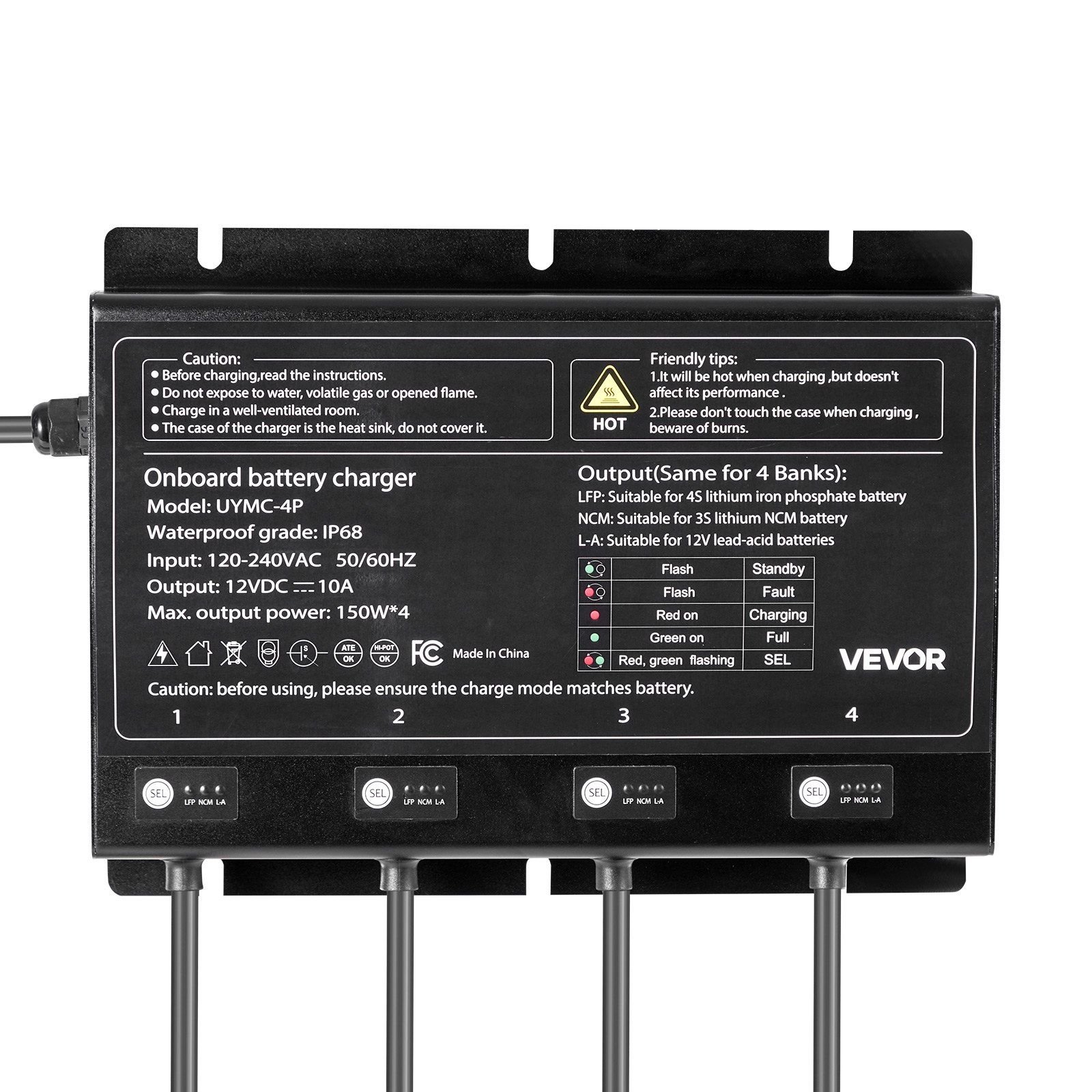 1.Marine Battery Charger: This marine battery charger provides a stable 4-bank 12V/10A output, compatible with lead-acid and lithium-ion batteries. Three charging modes (LFP, NCM, L-A) ensure efficient, secure charging for various battery types