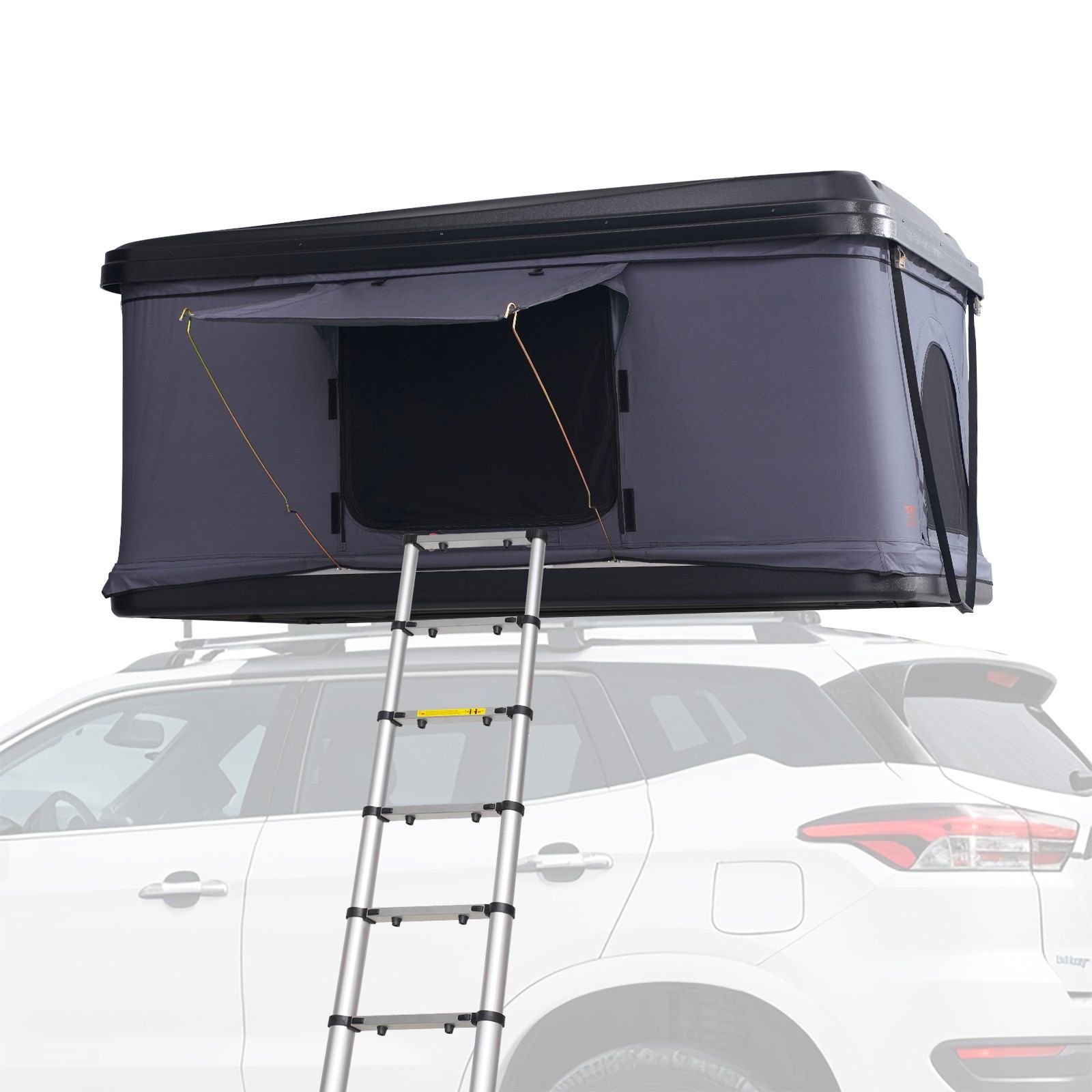 5.7.5 FT Telescoping Ladder: Comes with a 7-section aluminum telescoping ladder with a maximum load capacity of 330 lbs, making it easy to enter the tent. The ladder's length is adjustable, extending up to 7.5 ft / 2.3 m and shortening to 2.4 inches / 720 mm to fit different vehicle heights.
