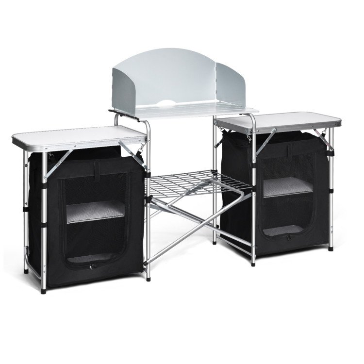 Made of high quality steel frame and oxford fabric, the kitchen station is sturdy and durable for outdoor use. All parts are packed in the carrying bag, perfect for outdoor activities like camping, spring outing, etc. With the detailed user manual, you also won't find any difficulty assembling the grill table.
